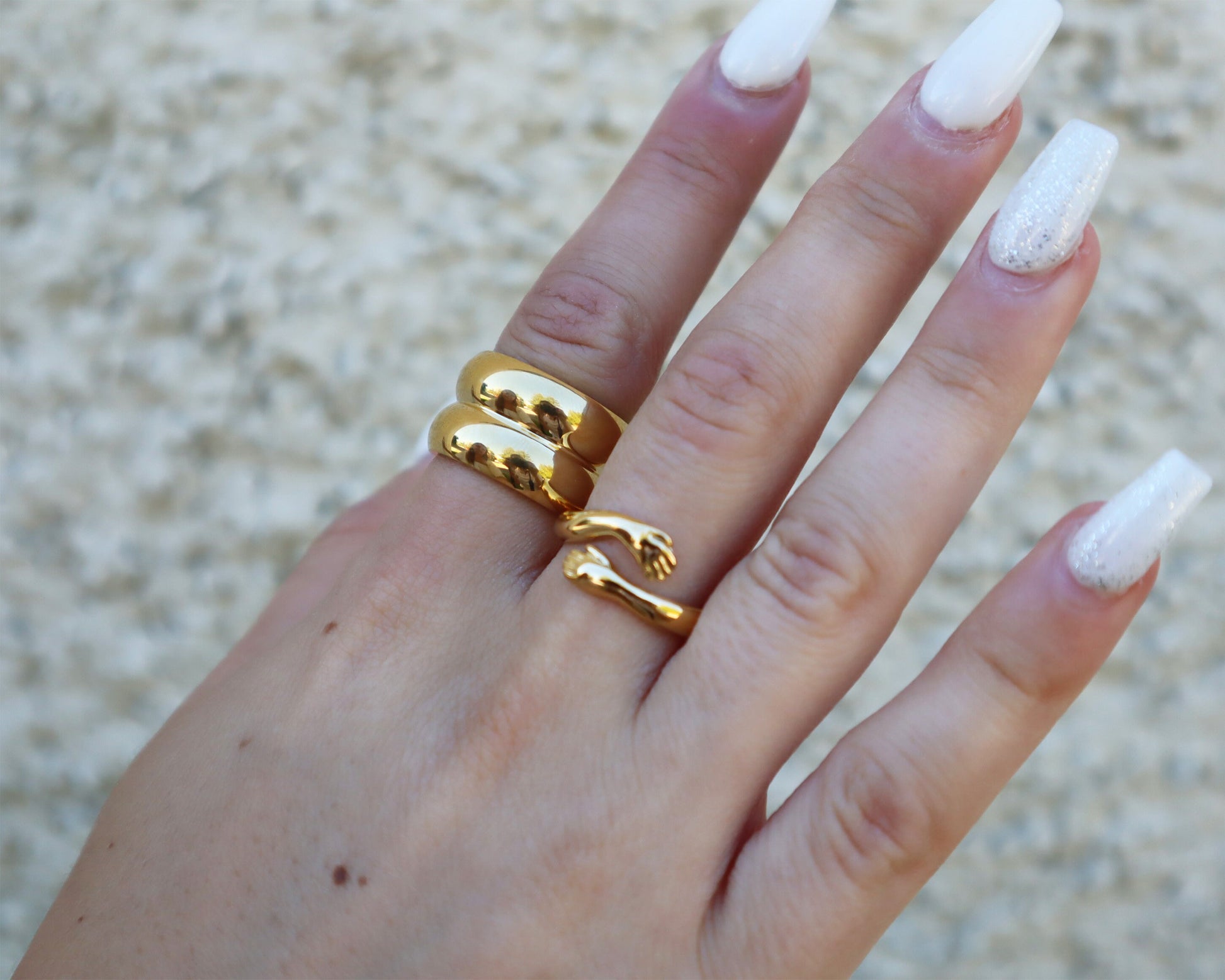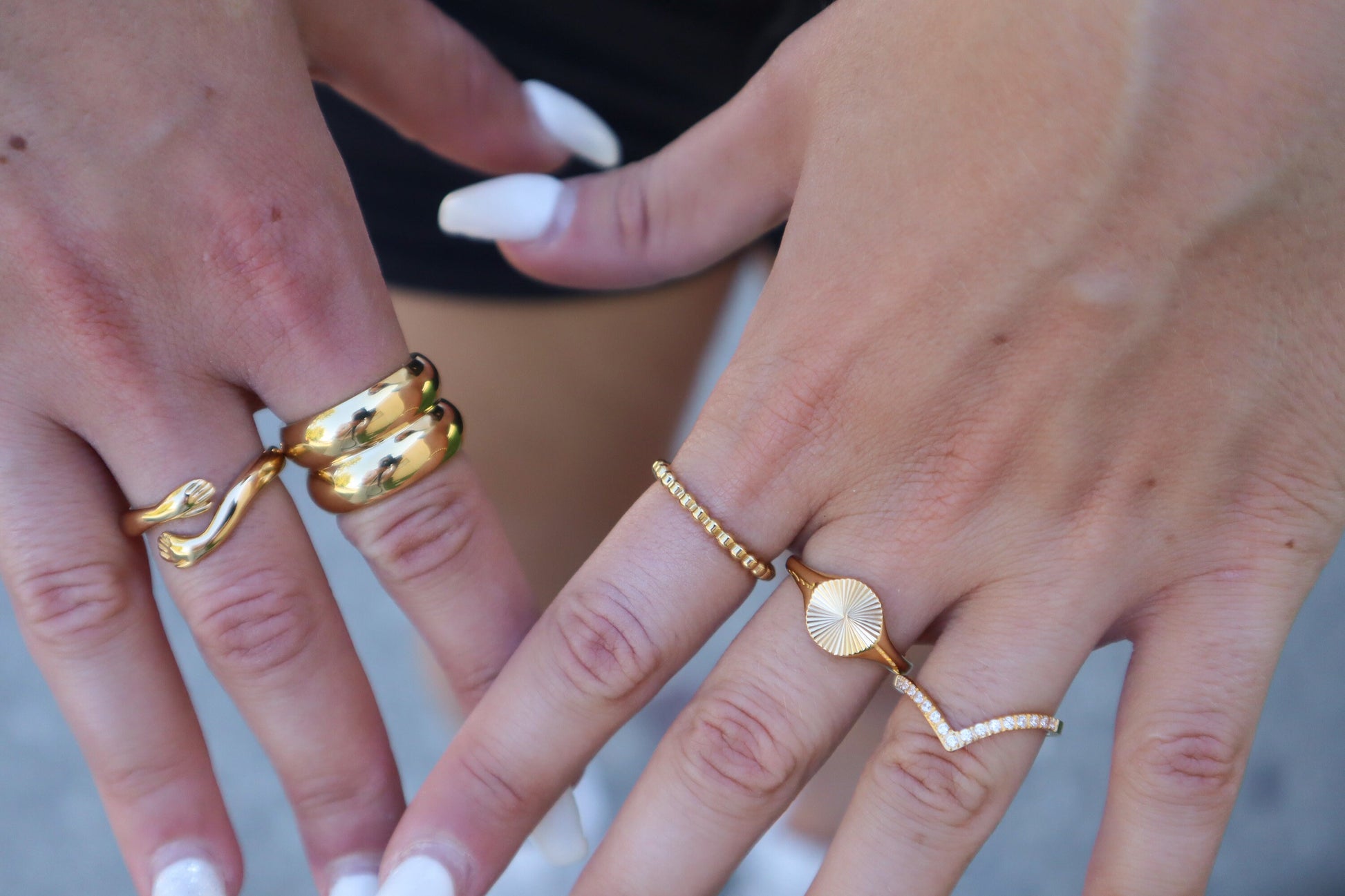 Stainless Steel, 18k PVD gold plating. PVD gold plating is 10 times thicker than standard gold plating and more resistant to everyday wear.