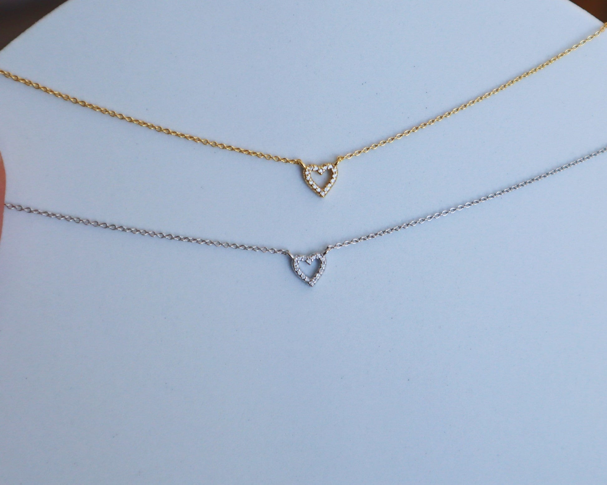 Dainty Gold Heart CZ sterling silver Necklace, Floating Heart Necklace, Minimalist Jewelry, Bridesmaid Necklace, Gift for Mom, gift for her