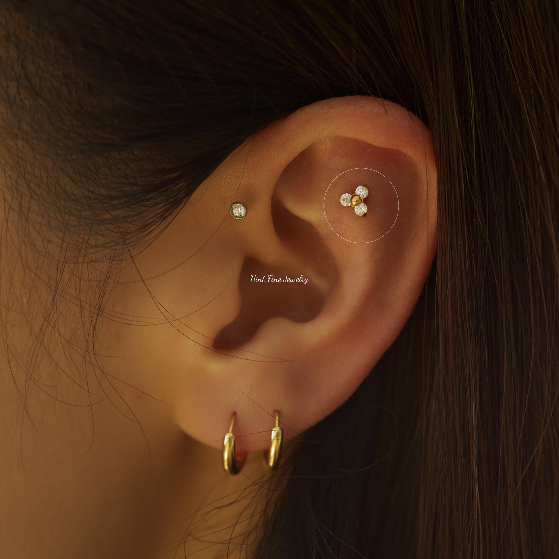 ✦Cartilage and lobe piercing in gold ASTM F136 Titanium.