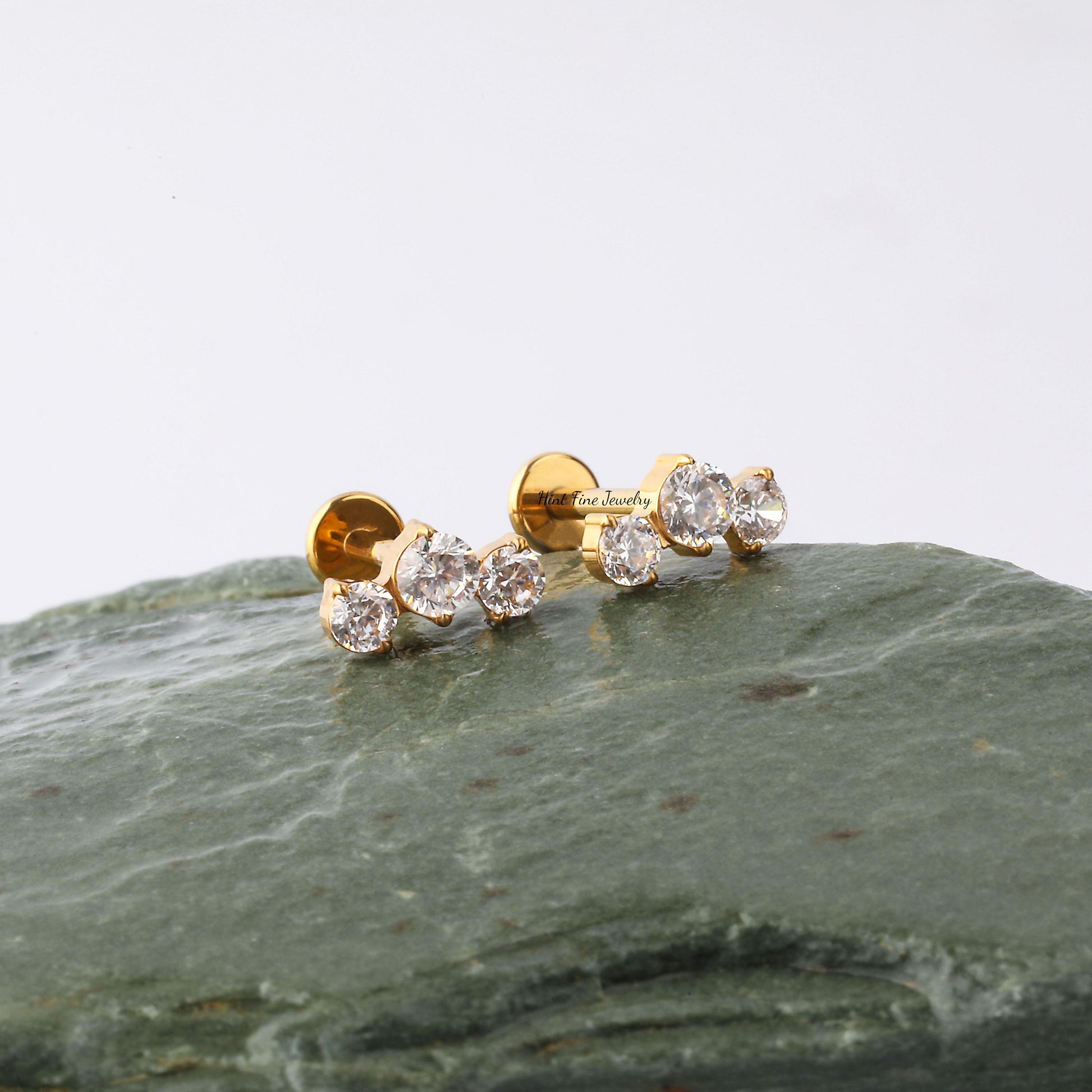 WaterProof-16G G23 Trio Climber Internally Threaded Labret • tragus stud • conch earrings • cartilage helix stud • flat back labret stud