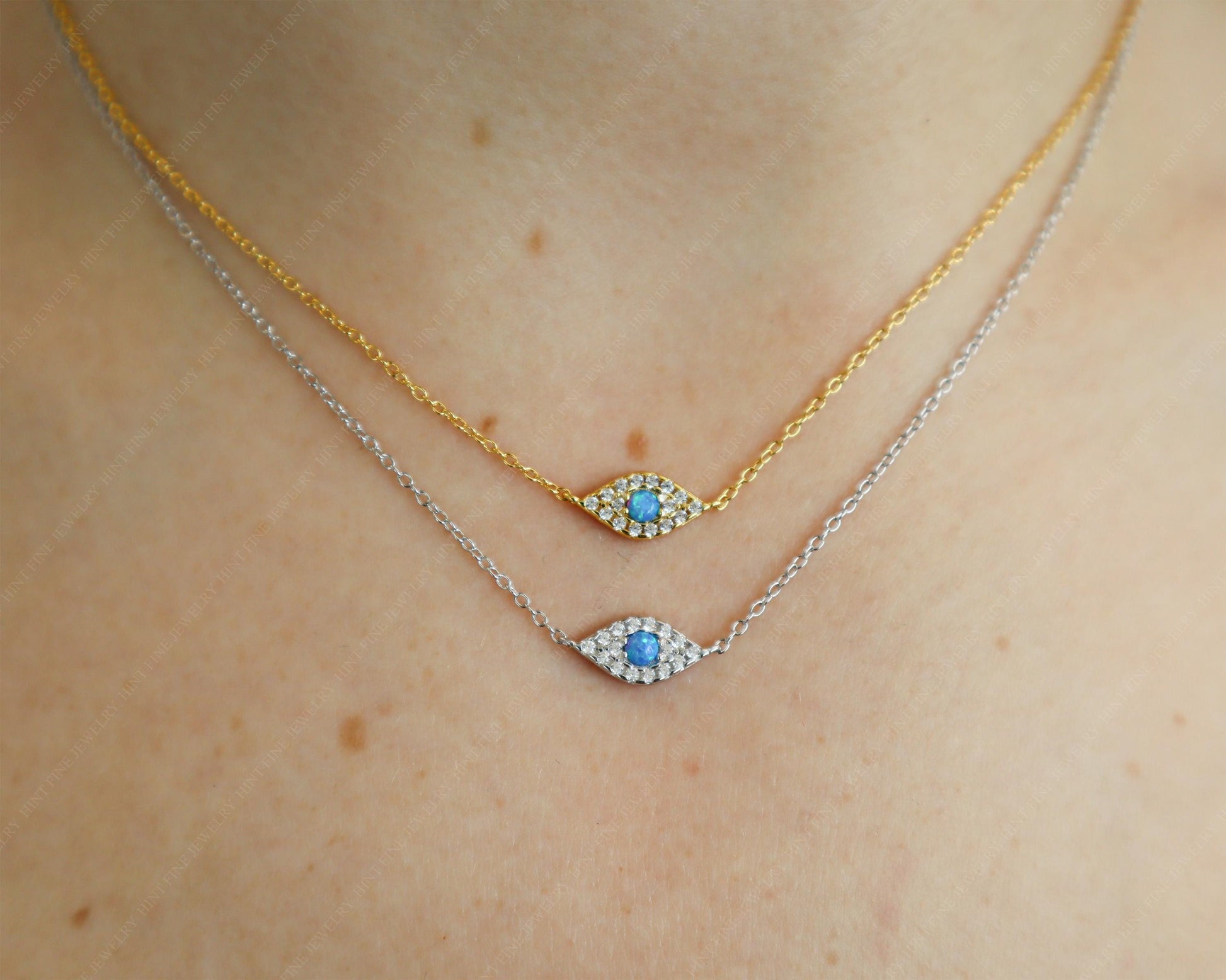 WaterProof-Dainty Opal Gold Eye Necklace, Sterling silver Eye Necklace, Minimalist Jewelry, Gift for Mom, gift for her