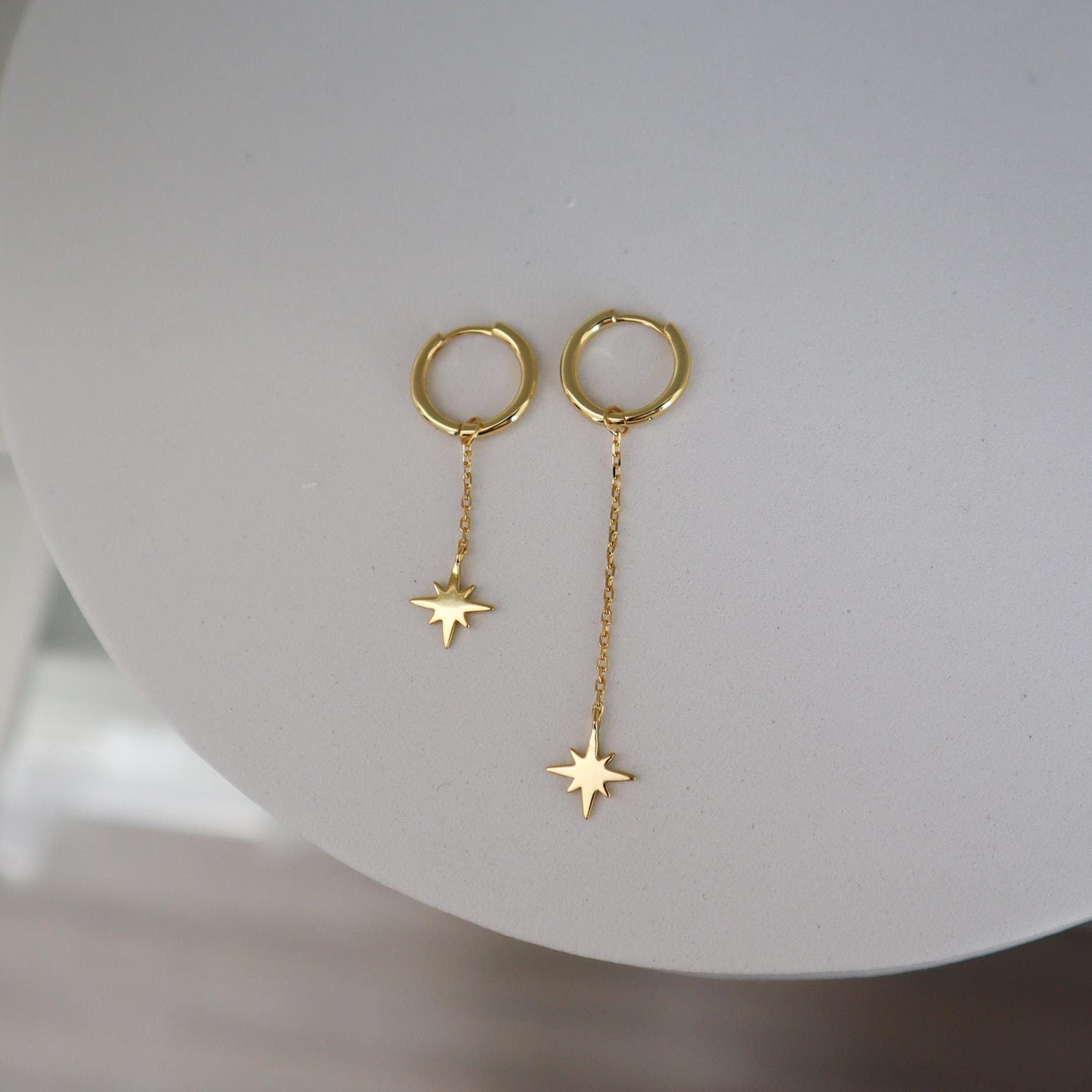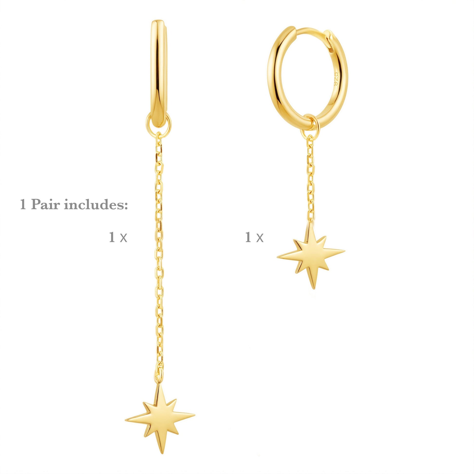 1 pair includes one long chain star earring and one short chain star earring.