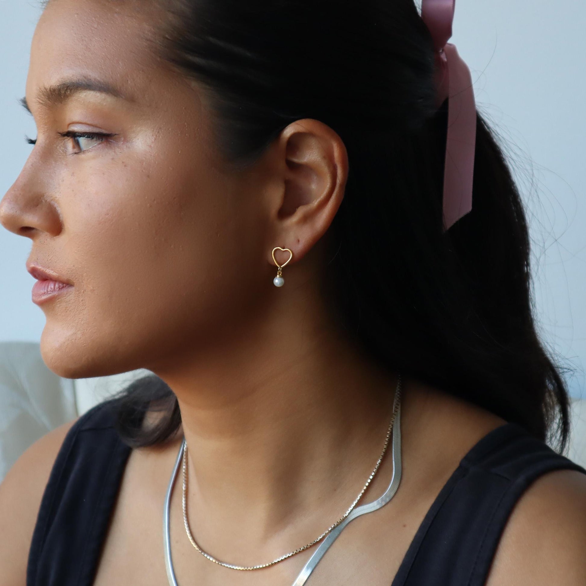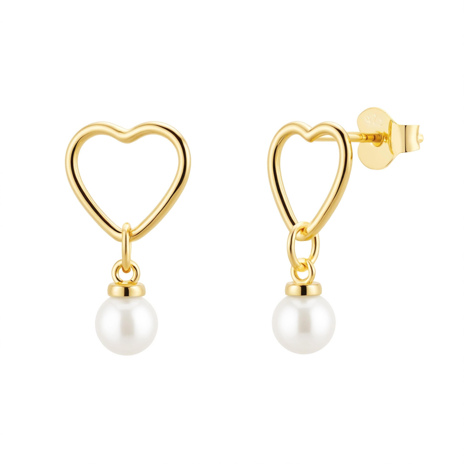 WaterProof-Pearl Drop Earrings, Heart Dangle Earrings with Pearls, Bridesmaid Earrings, Gift for Her