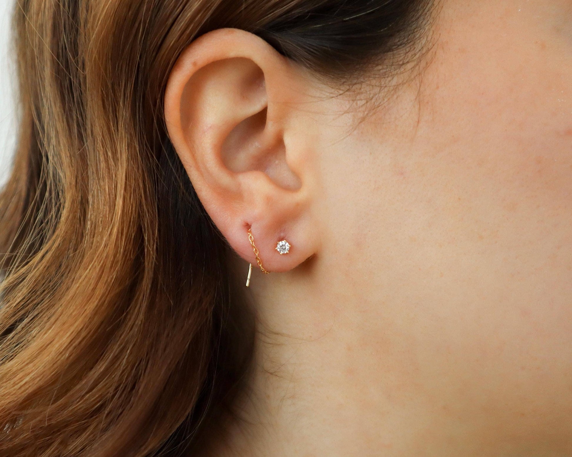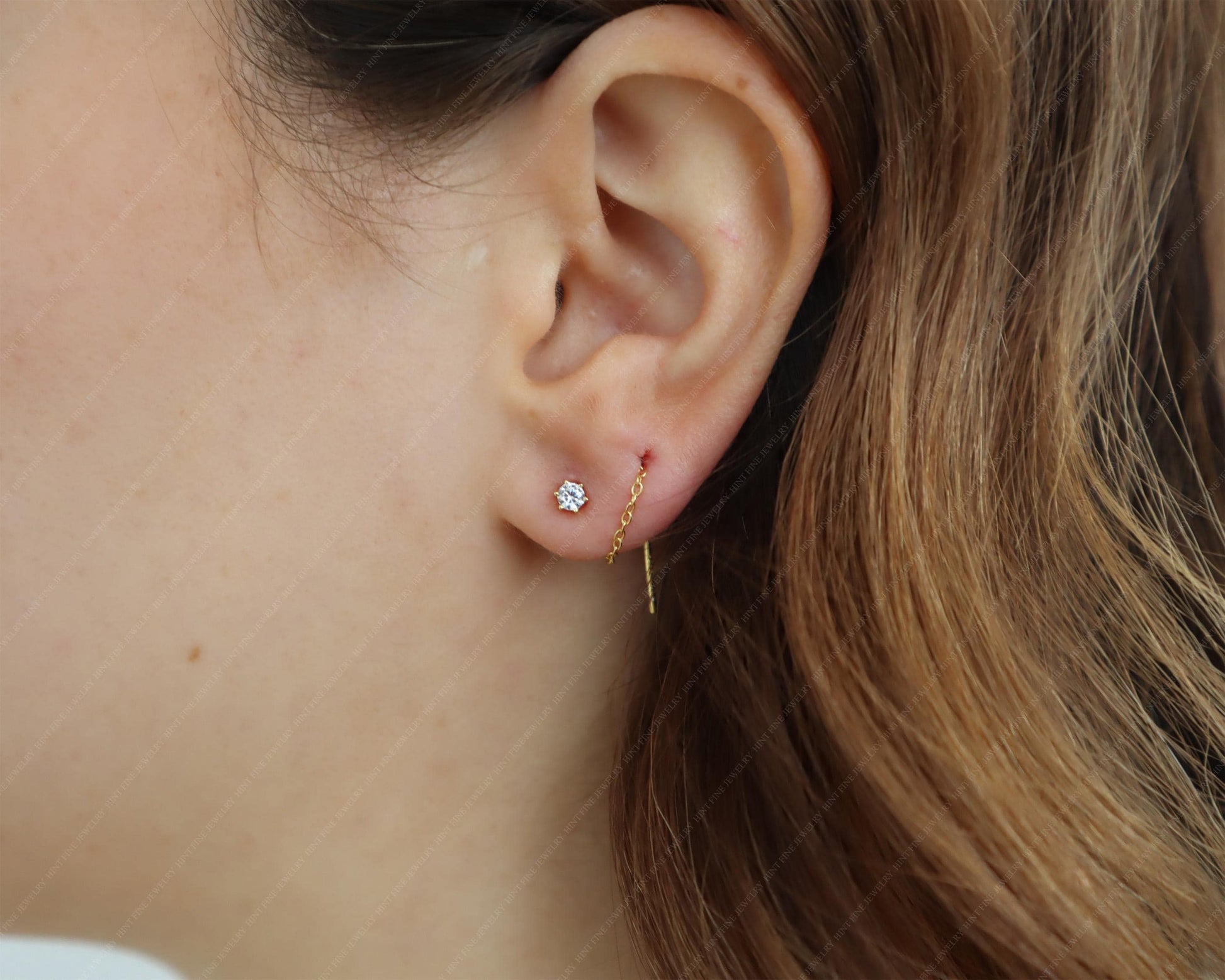 WaterProof-Threader chain earrings, 18k gold-plated sterling silver earrings, Christmas gift, dainty chain earring